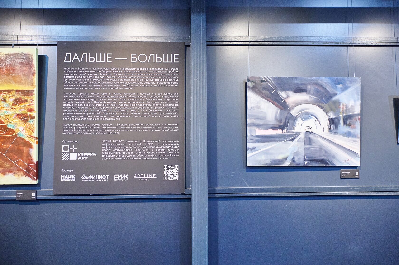 Превью выставки «Дальше—Больше» представило более 20 произведений современных авторов, раскрывающих жизнь современного человека через изменения среды, интеграции, созданной человеком инфраструктуры для улучшения жизни, в живую природу. Полный проект выставки будет реализован в течении 2025 года, в нем примут участие более 35 авторов, иллюстрирующих этапы развития инфраструктуры.