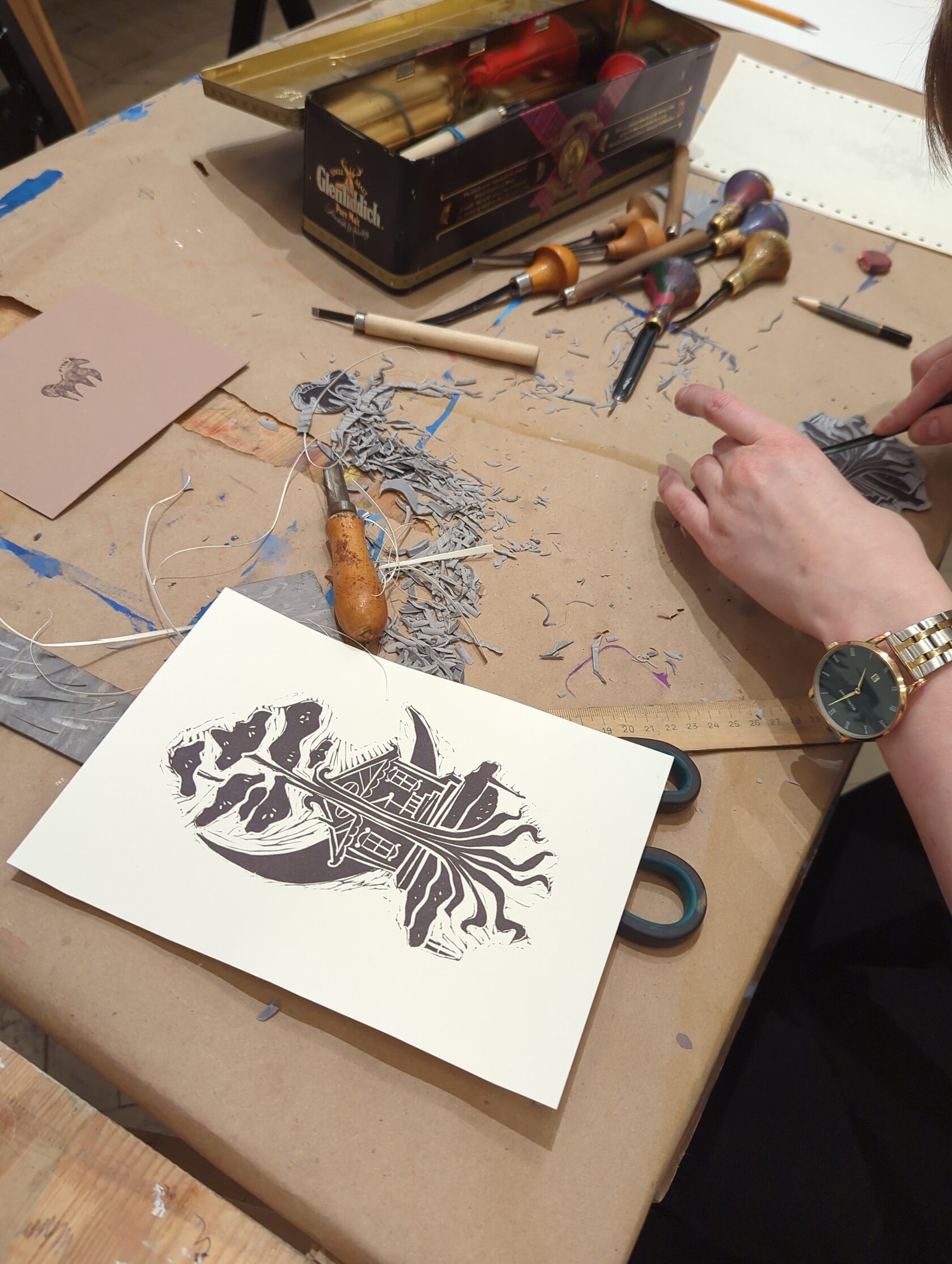 Всё включено: все материалы (линолеум, резцы, краска, бумага) мы предоставляем.